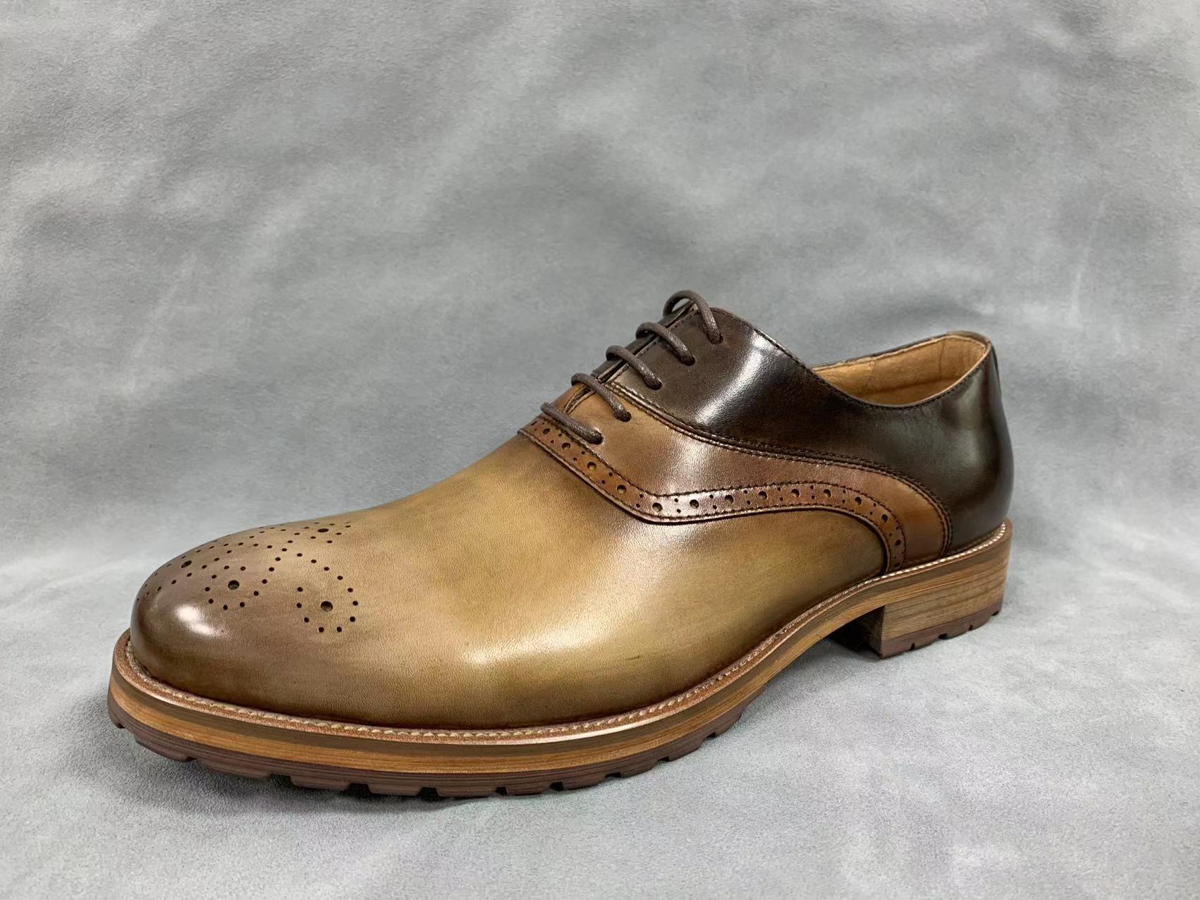 • Hand painted Calfskin leather upper with two tone finish